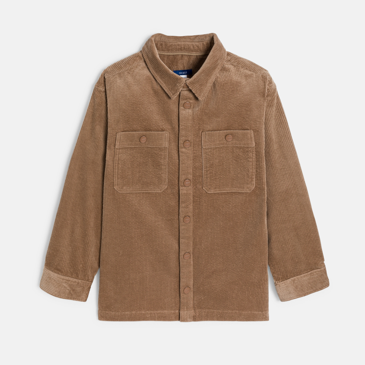 قميص فوقي من القطيفة مضلع بني اللون، للأولاد