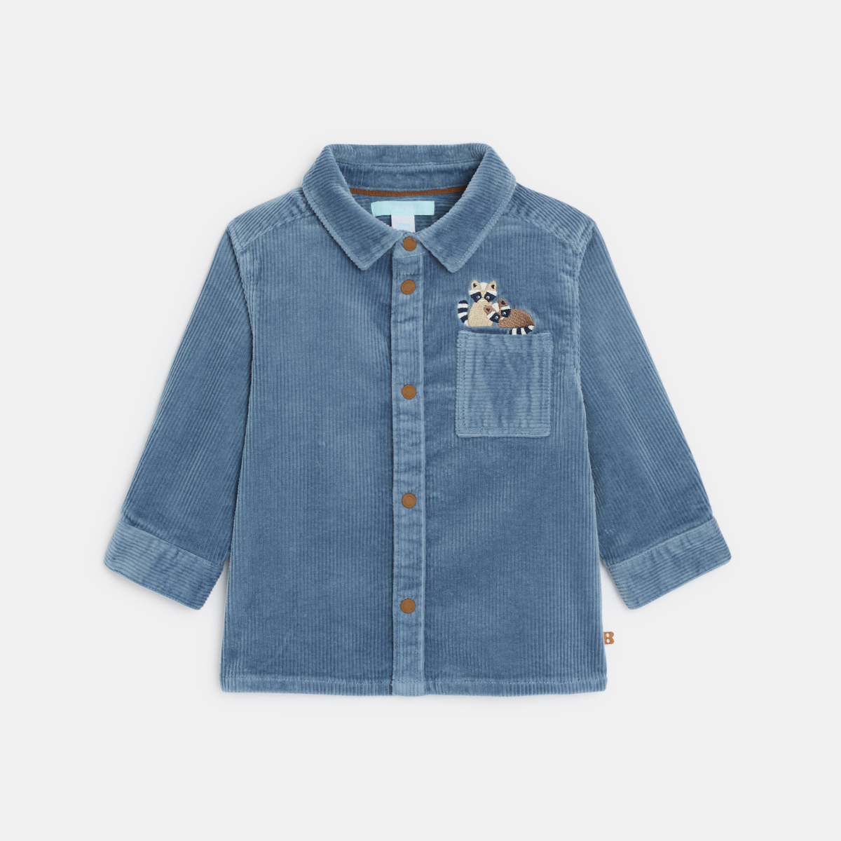 قميص فوقي من القطيفة مضلع أزرق اللون للطفل الصغير