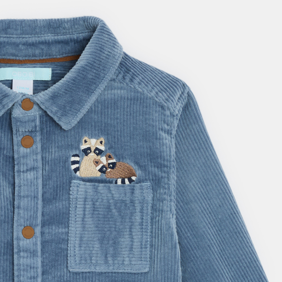 يمكن أيضًا ارتداء هذا القميص المخملي المضلع والناعم كسترة وكقميص فوقي، حسب الرغبة. تصميم واسع مريح بأزرار ضغط وعليه تطريز لحيوانات.