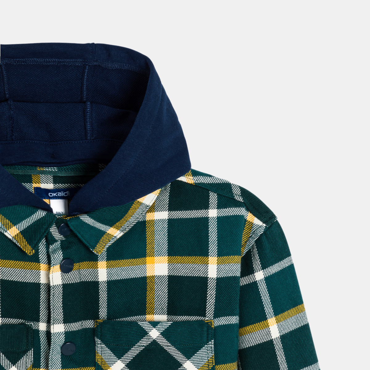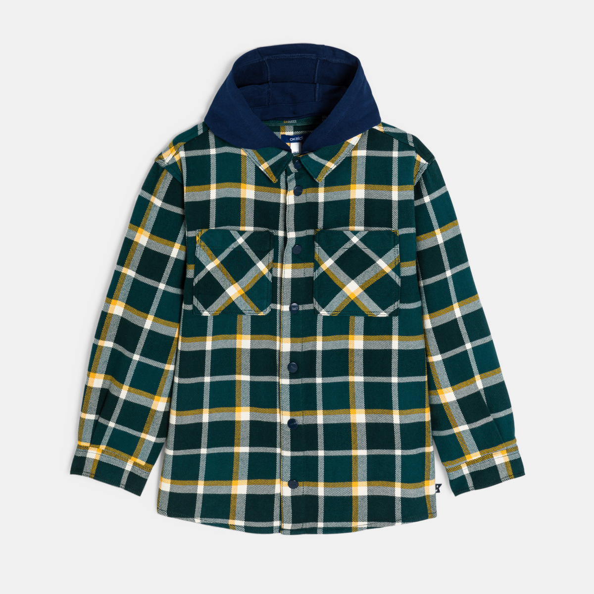 قميص فوقي مربعات، بغطاء رأس، أخضر اللون للأولاد