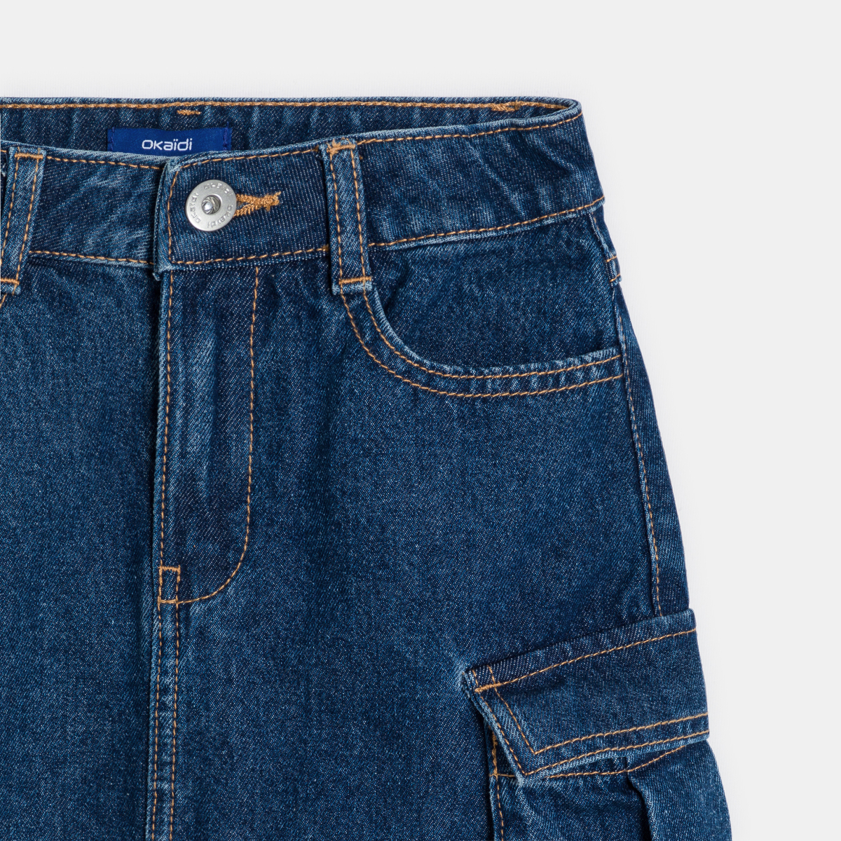 تنورة جينز كارغو، باللون الأزرق، للفتيات