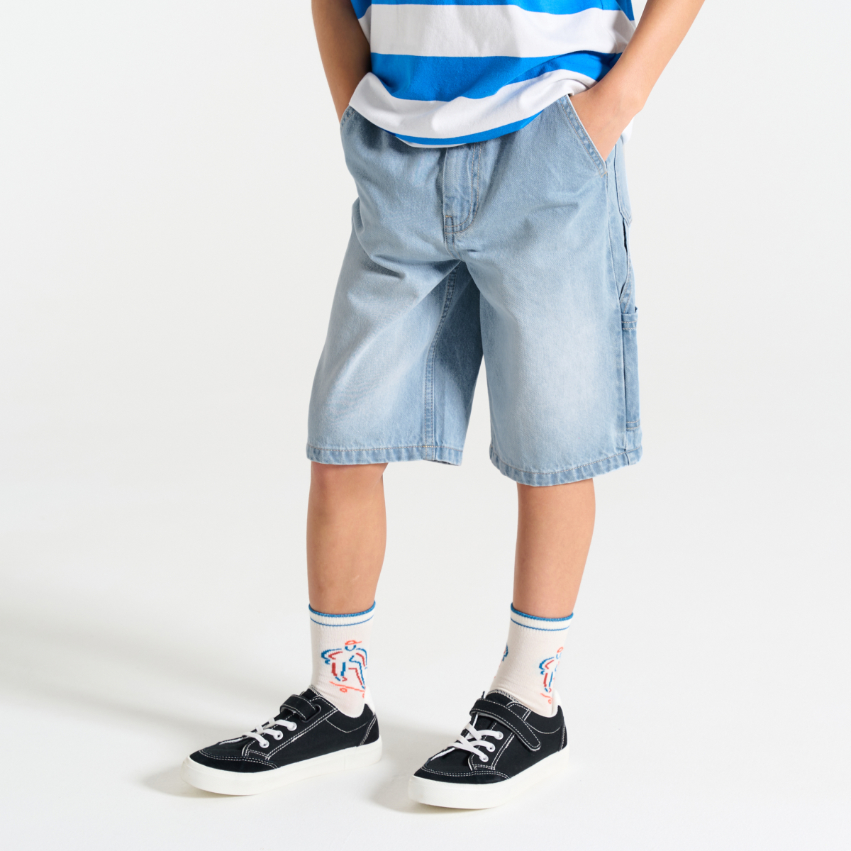 شورت برمودا كاجوال جينز باهت أزرق فاتح للأولاد