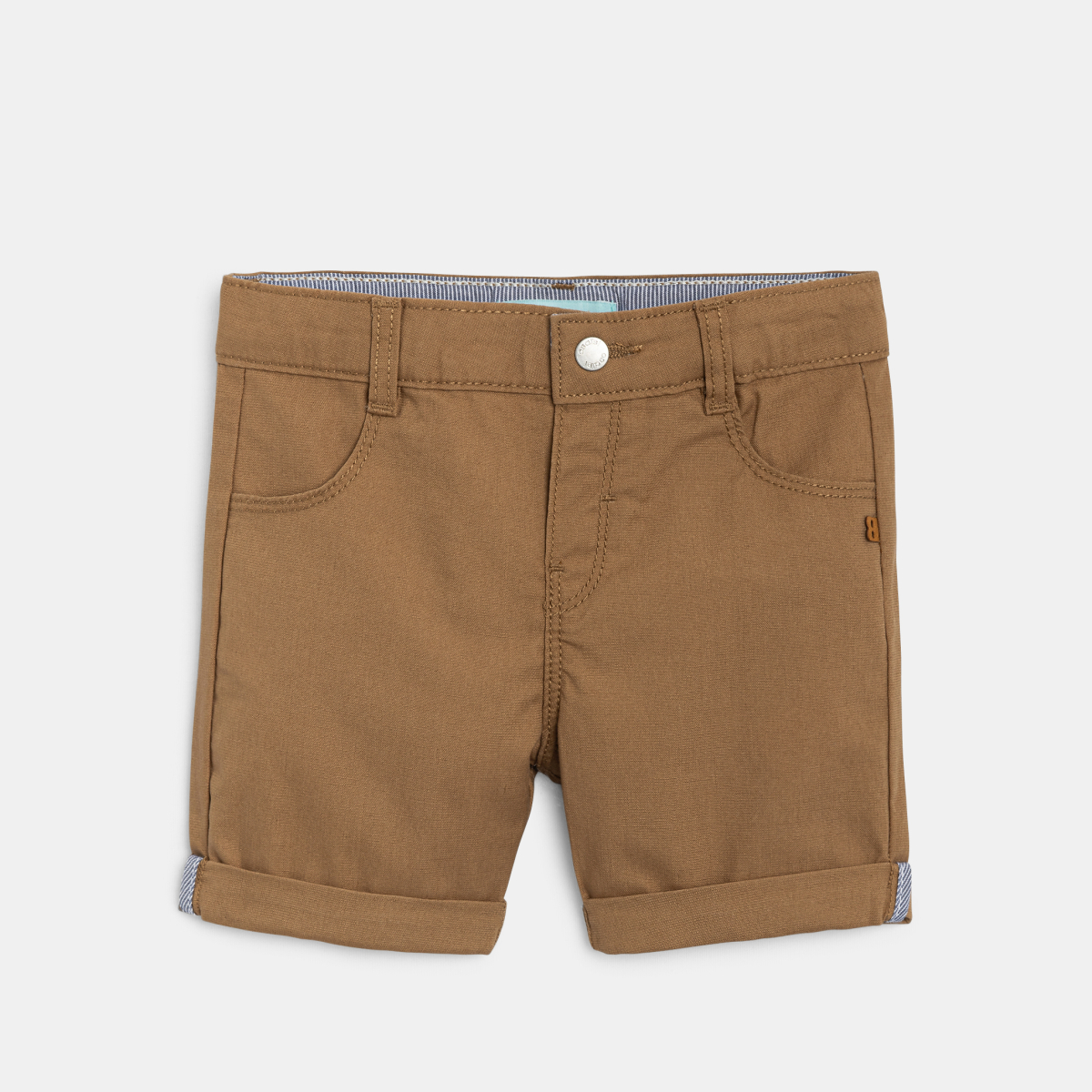 شورت برمودا من القطن المزخرف، بقصة مستقيمة وباللون البني، للفتيان الصغار