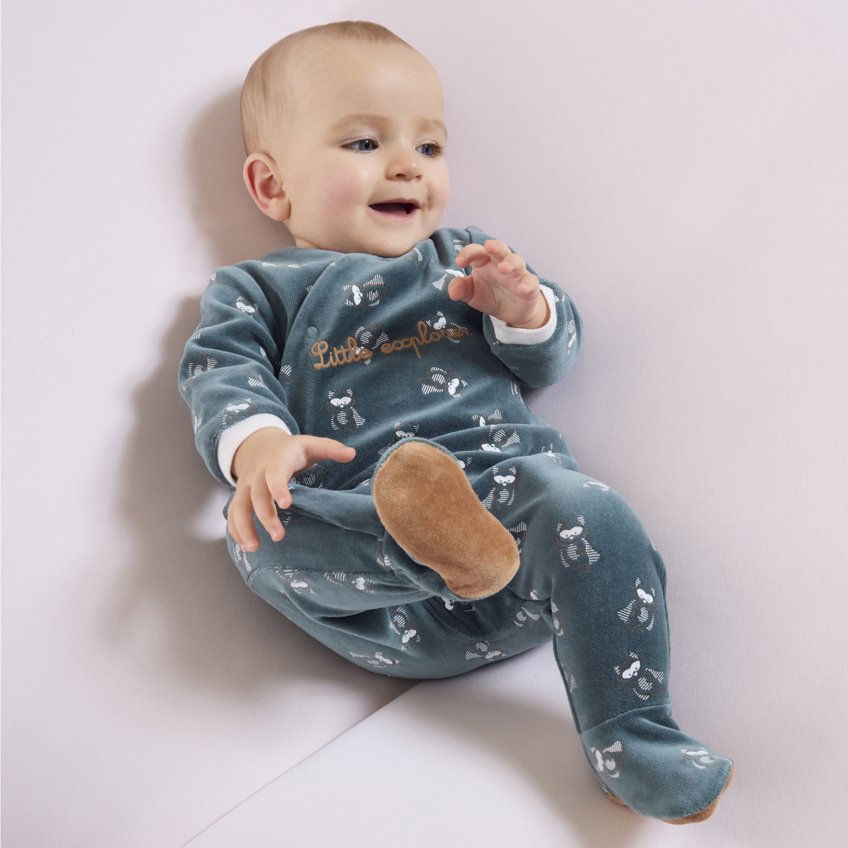 ينعم المستكشفون الصغار بالدفء والراحة في الليالى الباردة في هذه البيجاما المخملية الناعمة من قطعة واحدة. مزودة بأزرار كبس في الأمام حتى يمكنك تلبيس طفلك وهو مستلقيًا على ظهره، مع طبعات وتطريز في المقدمة.