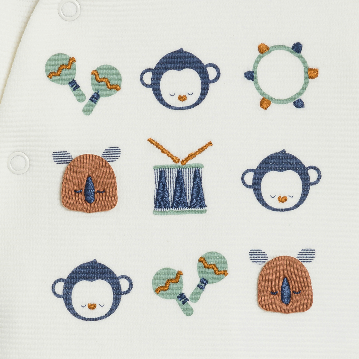 توقظ الحيوانات العازفة للموسيقى الصغار بلطف عند ارتداء بذلة النوم هذه. بيجاما مخملية مضلعة من قطعة واحدة تمنح الدفء للحياة اليومية للأولاد. تُفتح بأزرار كبس من الأمام حتى يتم إلباس الرضع بسهولة دون تحريكهم كثيرًا.