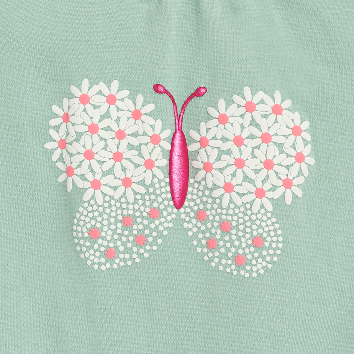 أفرول قصير زهري عليه صورة فراشة للطفلة الرضيعة