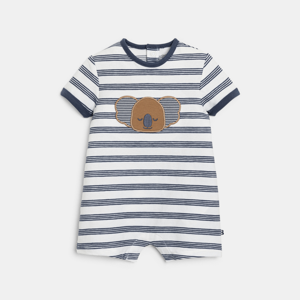 حيوان الكوالا الصديق يعتني بالصغار! الأولاد محاطون بالراحة والنعومة في هذا الأفرول المخطط. تصميم بأكمام وأرجل قصيرة وأزرار ضغط على إلى الظهر لسهولة الارتداء.