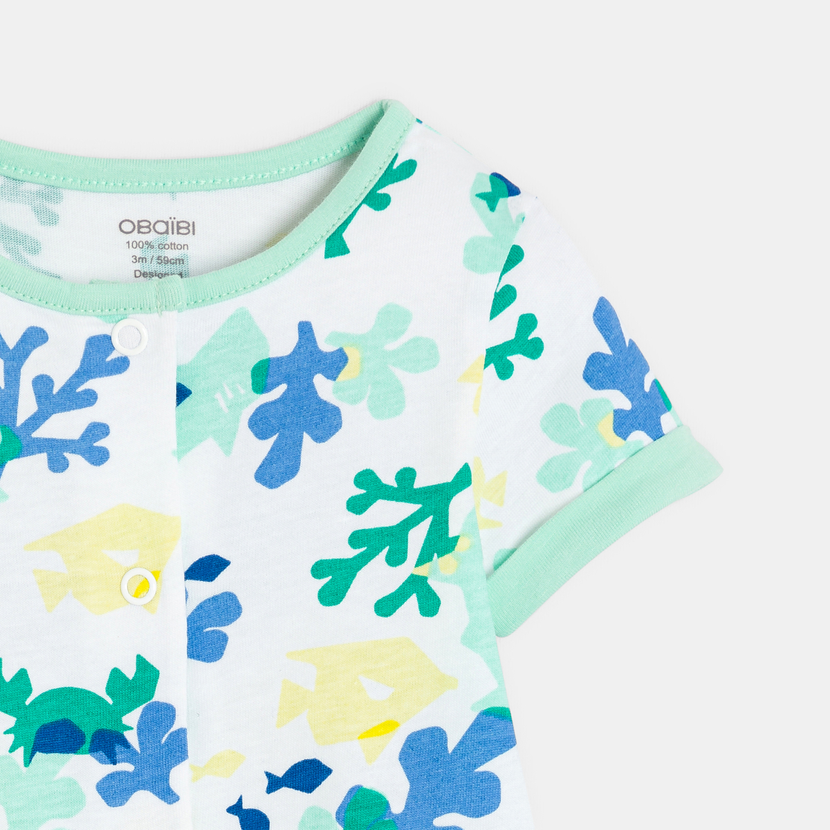 أسماك جميلة للأولاد الصغار! أفرول قصير للنهار، أو بيجاما للنوم ليلًا، حسب رغبتك. على أي حال، هذا الأفرول يحيط الأولاد بقطنه الناعم على بشرتهم الضعيفة. كما يتميز بفتحة أمامية تغلق بأزرار.