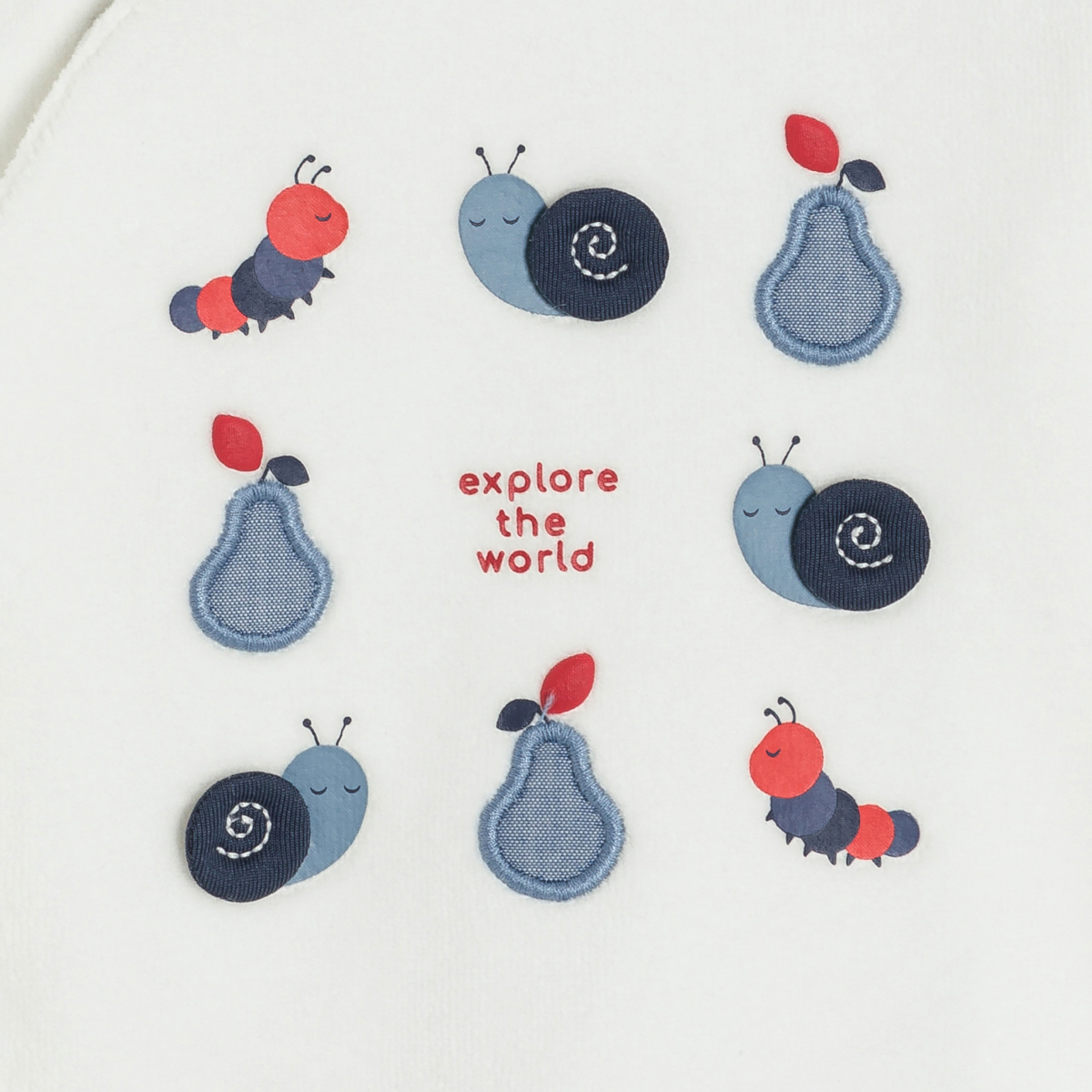 Les petits escargots et les chenilles explorent le monde sur ce pyjama doux en velours. Une forme une pièce qui entoure les garçons de chaleur et de confort pour des moments paisibles. Ouverture sur le devant pour faciliter l'habillement.