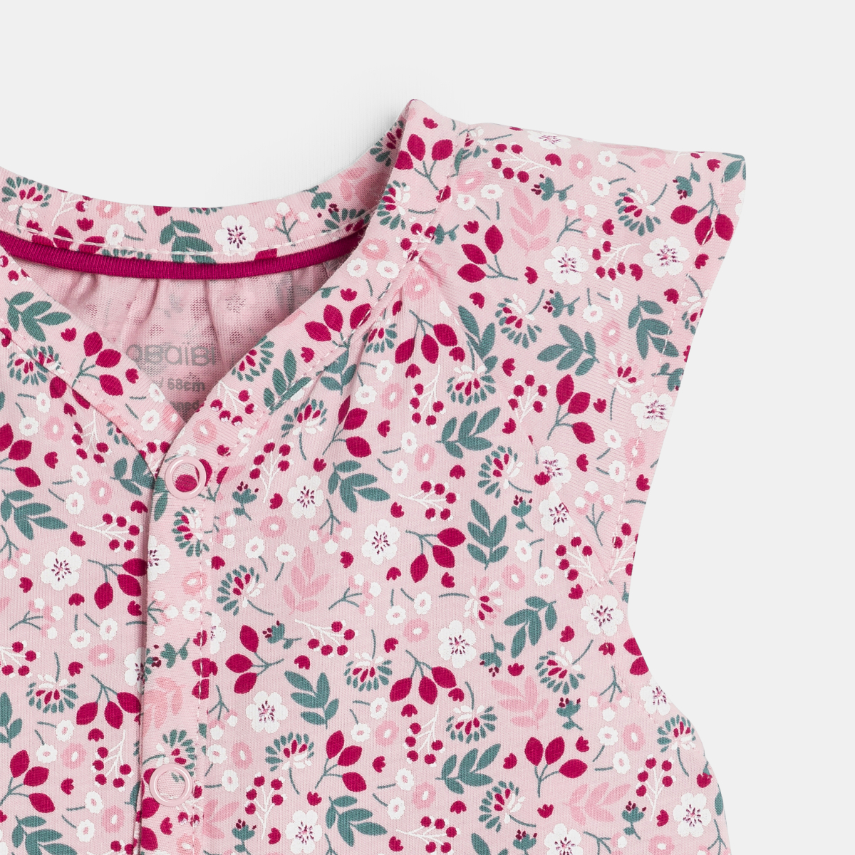 تشعر الفتيات الرومانسيات بالراحة في هذا الأفرول الخفيف المزين بنقش الزهور. أكمام قصيرة وأفخاذ مطاطية للاستمتاع بالأيام الدافئة براحة تامة. الفتح بأزرار ضغط لكي ترتديه الصغيرات بسهولة.