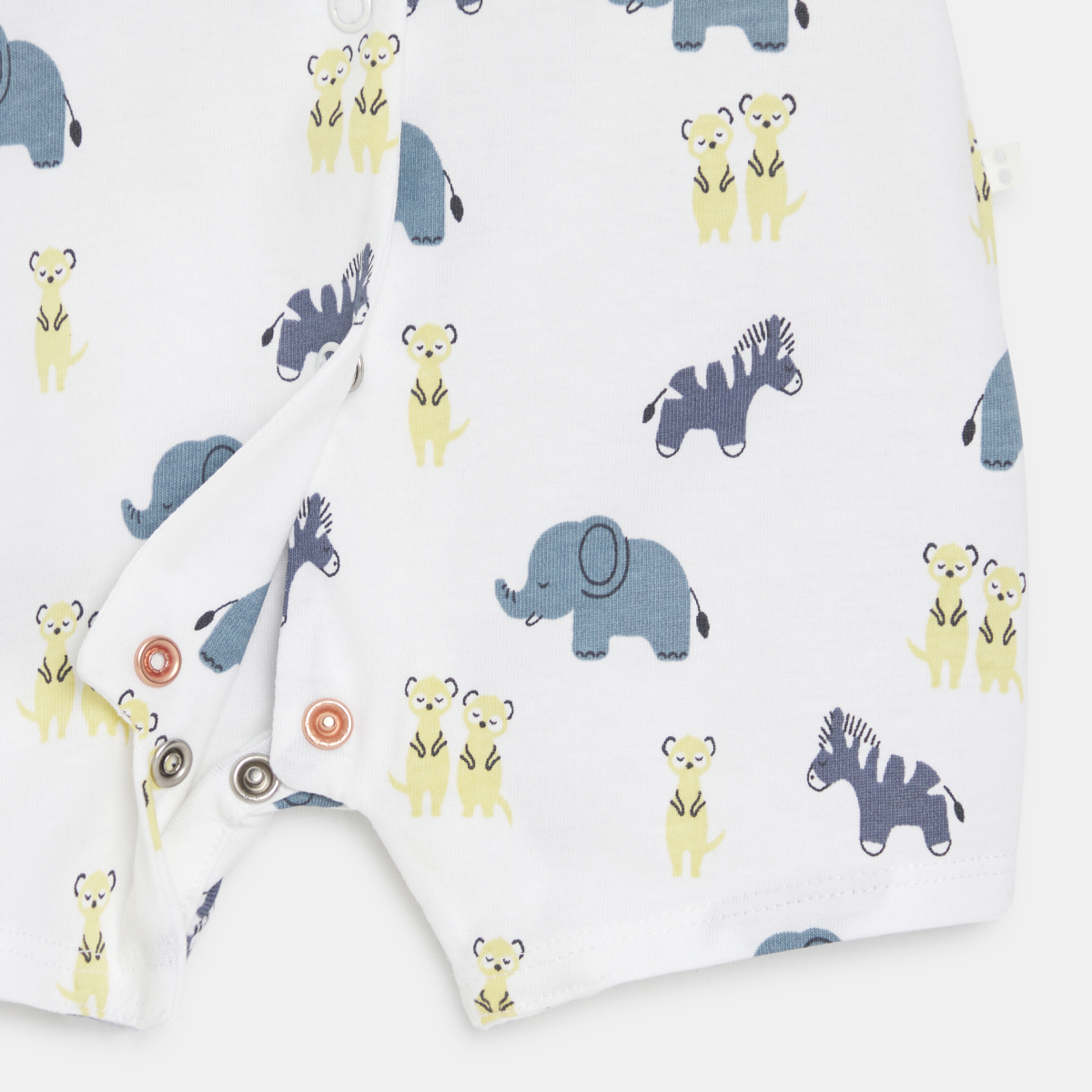 مع كل هذه الحيوانات على الأفرول الخاص بهم، فإن الأولاد على موعد مع السعادة. إنهم يعتنون به من أجل القيلولة الهادئة أو أيام يستكشفون الأشياء فيها. تصميم قصير من القطن الناعم مع أزرار ضغط من الأمام لسهولة الارتداء.