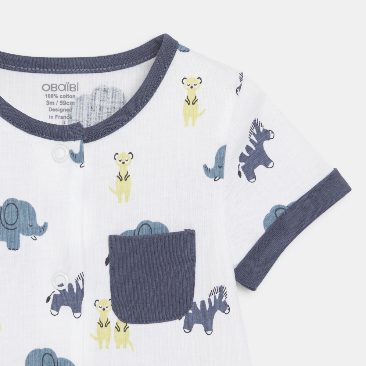 جمبسوت قصيرة مزينة برسوم الحيوانات، باللون الأزرق للأولاد الصغار