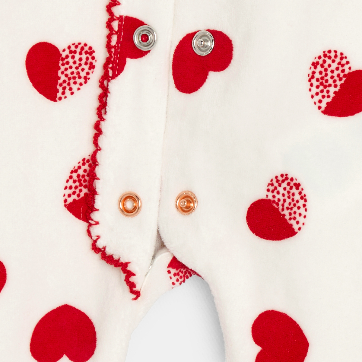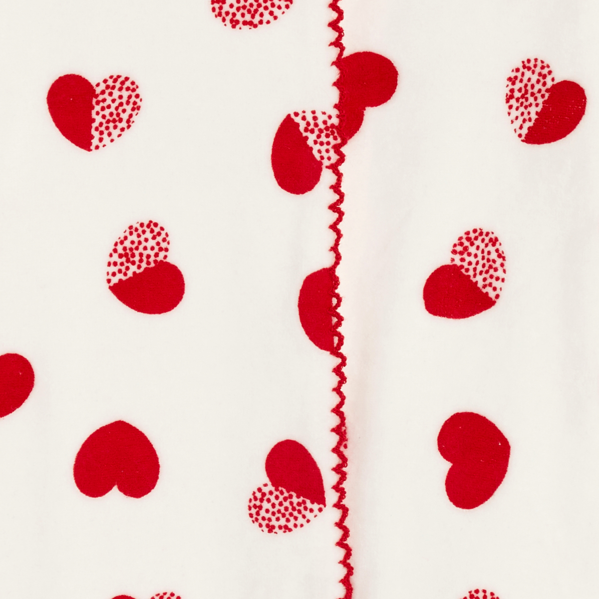 بيجاما مخملية عليها قلوب، بيضاء اللون، للطفلة الصغيرة