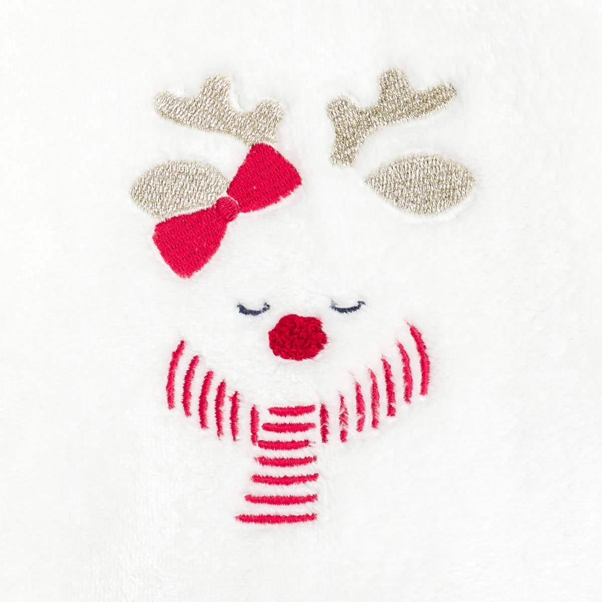تجمع هذه البيجاما المخملية المبهجة بين النعومة والراحة مع بلوزة بيضاء مزينة بنقشة غزال الرنة وبنطال أحمر مزين بعقود مطرزة. تضمن لك البلوزة ذات الأكمام الطويلة الدفء والراحة، بينما يحافظ البنطال ذو الجوارب المدمجة على دفء القدمين الصغيرتين. مثالية لقضاء أمسيات هادئة وليالي شتاء دافئة. سهل الارتداء وعملية لاستخدامها بشكل يومي.