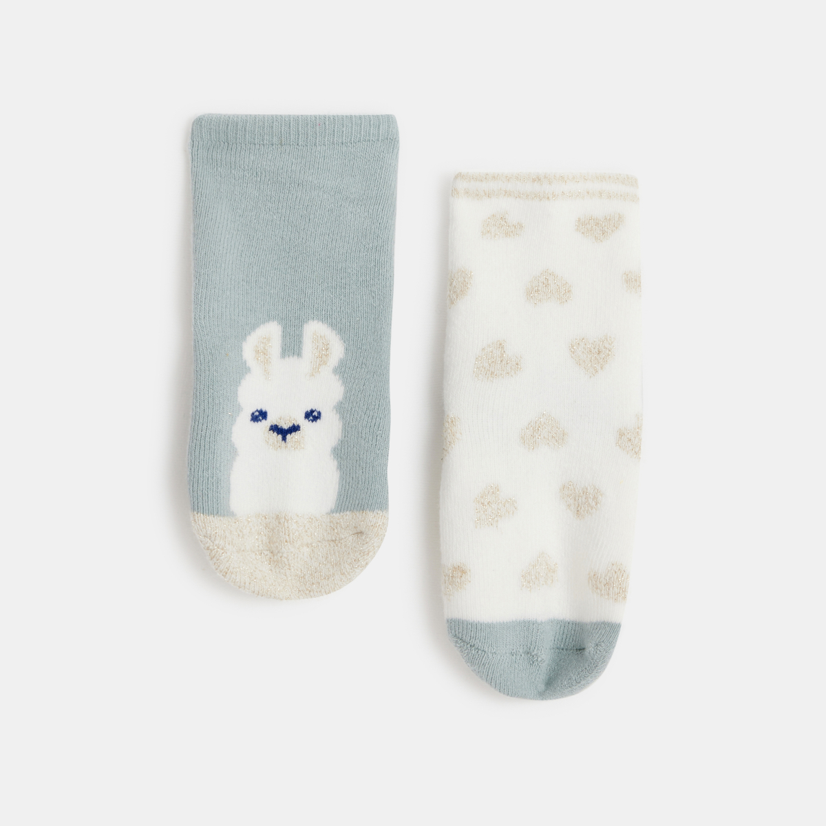 جوارب برسمة أرنب زرقاء مضادة للانزلاق للفتيات الصغيرات (طقم من قطعتين)