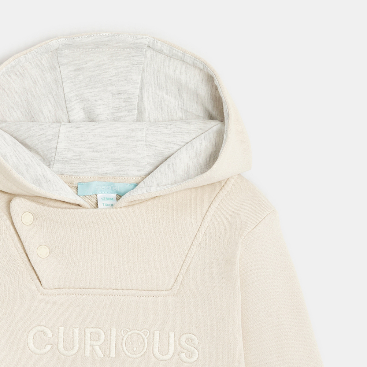 ندعوك أن تتحلى بالفضول وأن تعيد اتصالك بالطبيعة! مصنوع من الصوف الدافئ والمريح ليغمر الصغار بالنعومة. رسالة مطرزة على الصدر وياقة كروس بأزرار كبس.