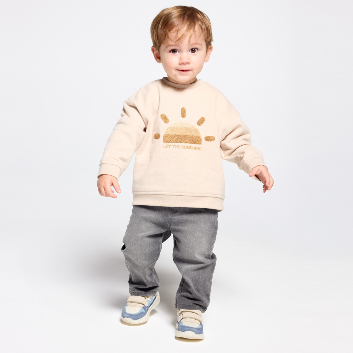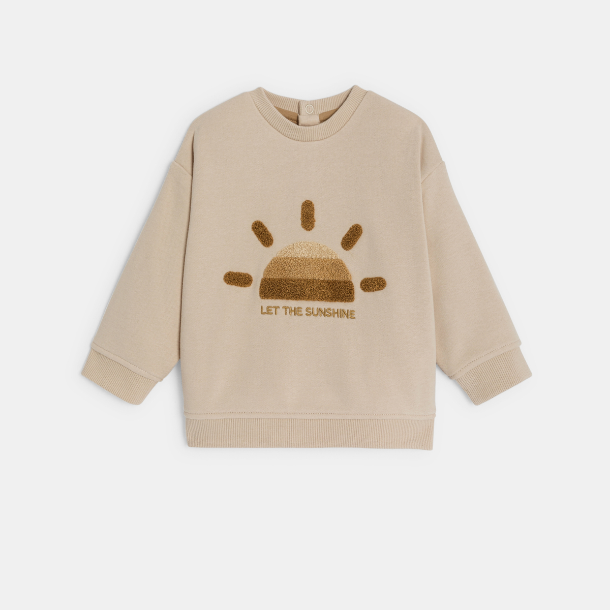 سترة من الصوف الناعم برسمة للشمس، باللون البيج للأطفال الصغار