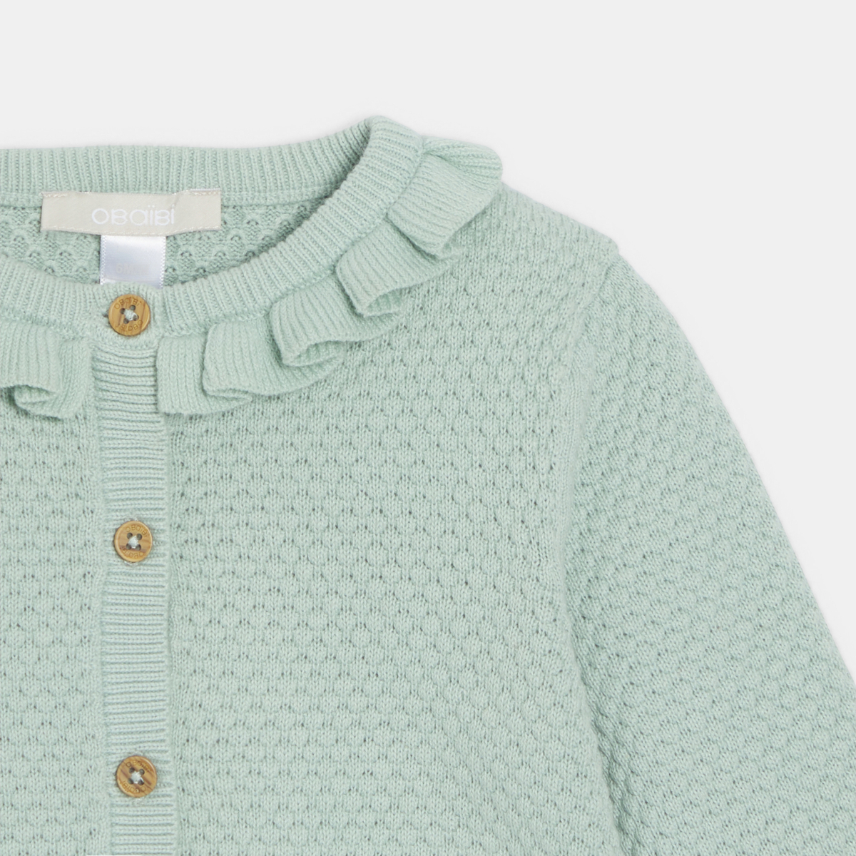 جيليه منسوج من التريكو الفاخر مع كشكشة، باللون الأخضر للفتيات الصغيرات