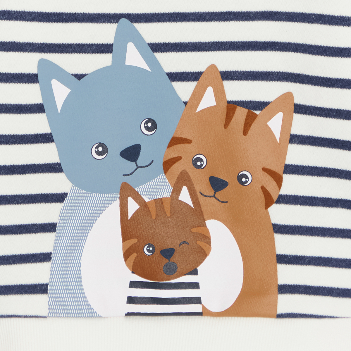 سويت شيرت ميلتون مقلم أرزق اللون مرسوم عليه قطة، للصبي الصغير