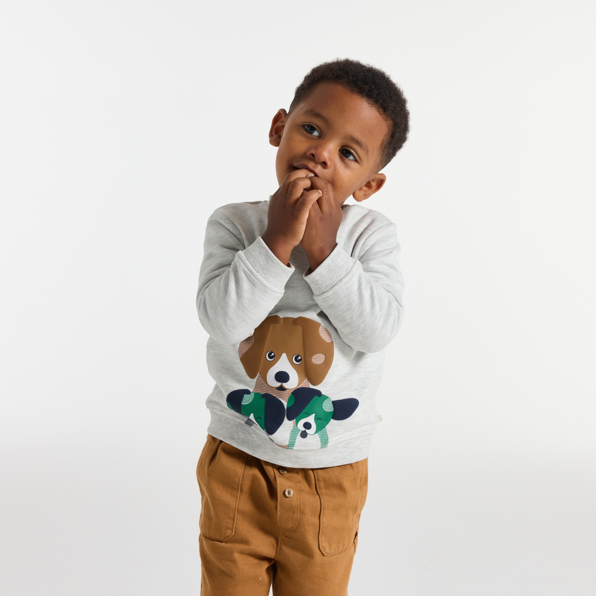 سويت شيرت ميلتون رمادي اللون مرسوم عليه كلب، للصبي الصغير
