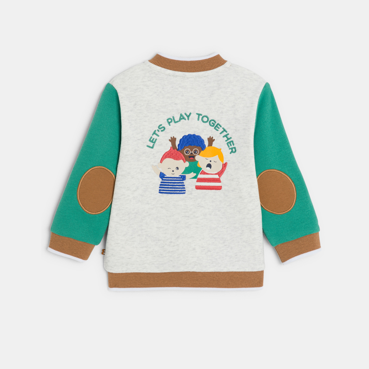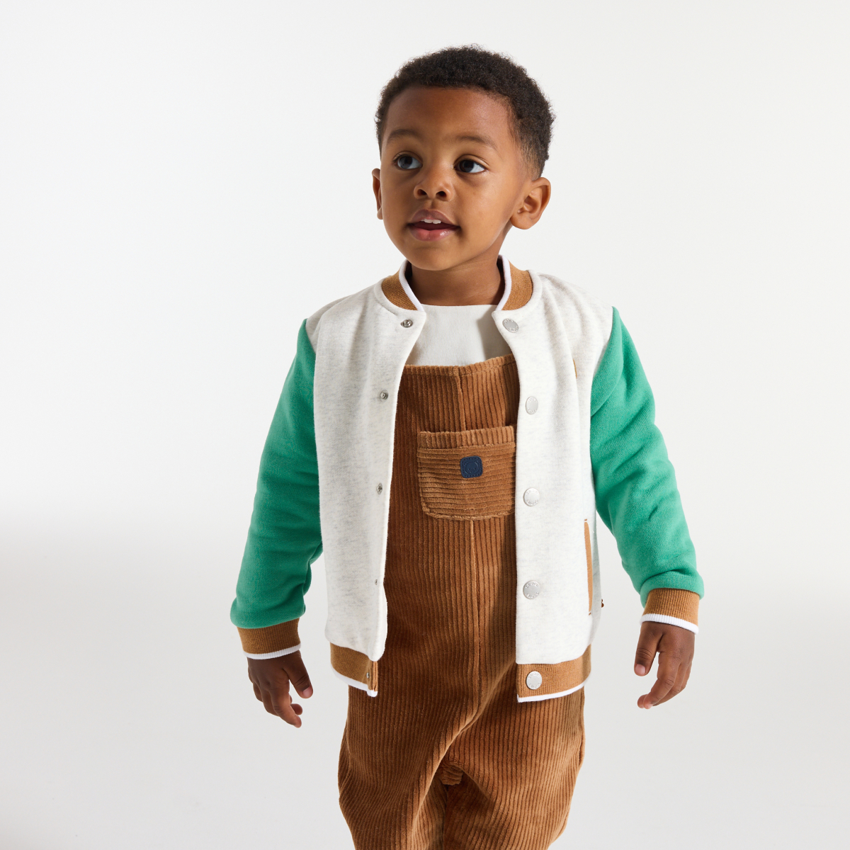 لنمرح معًا! مع هذه الرسالة المبهجة، بات الأمر واضحًا! نحن نحب روح الدبدوب التيدي في هذه السترة الصوفية الناعمة. ثنائية اللون بأكمام طويلة مع تشطيب بحواف مضلعة وإغلاق بأزرار ضغط لسهولة ارتداء الصغار لملابسهم.