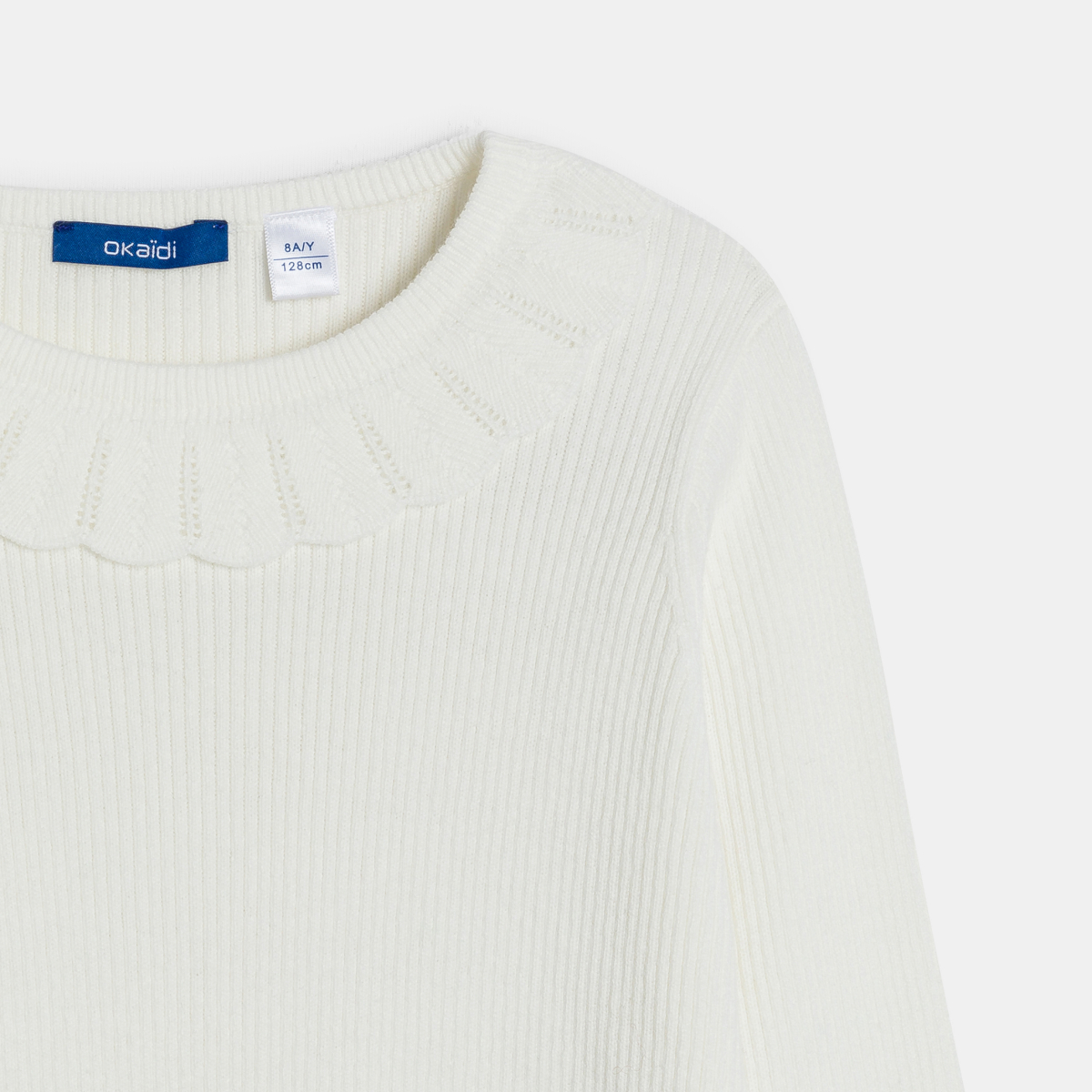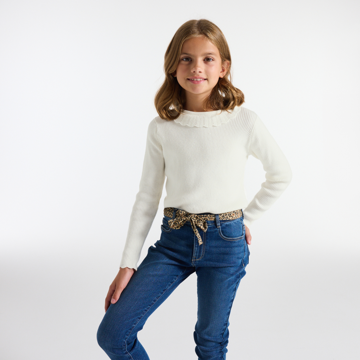 تُعد هذه الكنزة البيضاء قطعة أساسية لا بد منها، تمنح إطلالة أنيقة مع الشعور بالراحة في آن واحد. مصُنوعة من نسيج ناعم، وتتميز بقصة مستقيمة وبأكمام طويلة تمنح راحة مثالية يوميًا. بها ياقة مستديرة من الدانتيل تُضفي للكنزة لمسة أنيقة. مثالية أثناء الأيام الاعتيادية أو في المناسبات الخاصة. نسيجها مرن وقابل للتمدد قليلاً لراحة قصوى أثناء الارتداء والحركة.