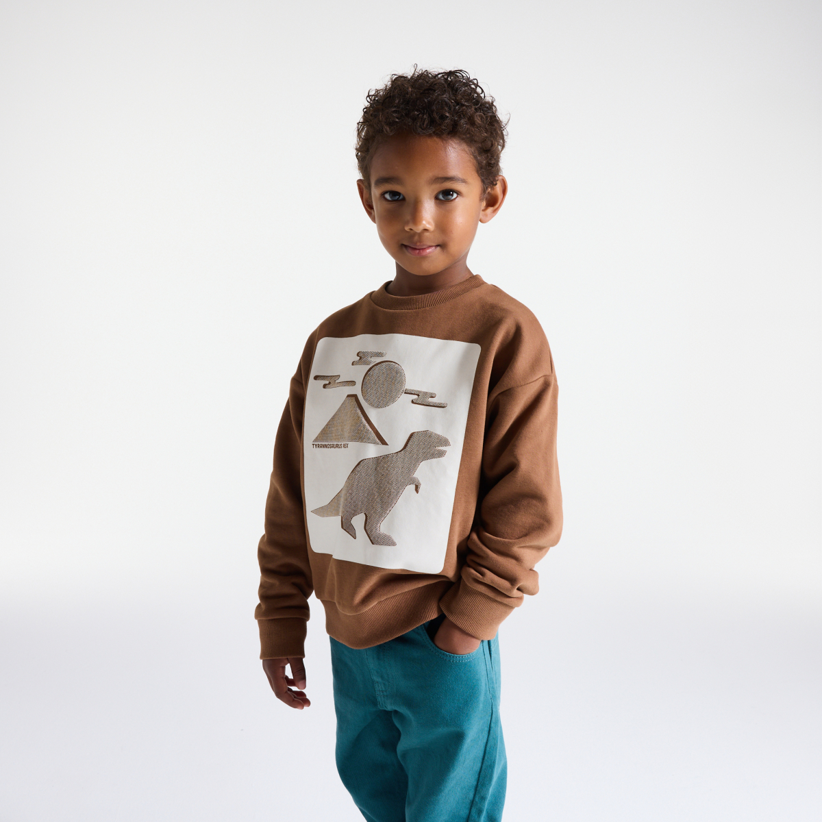 سويت شيرت مزين برسمة ديناصور، باللون البني للأولاد