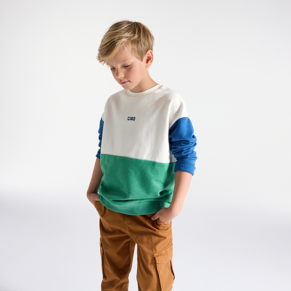 سويت شيرت بتصميم ألوان متداخلة من الصوف الناعم، باللون الأخضر للأولاد.