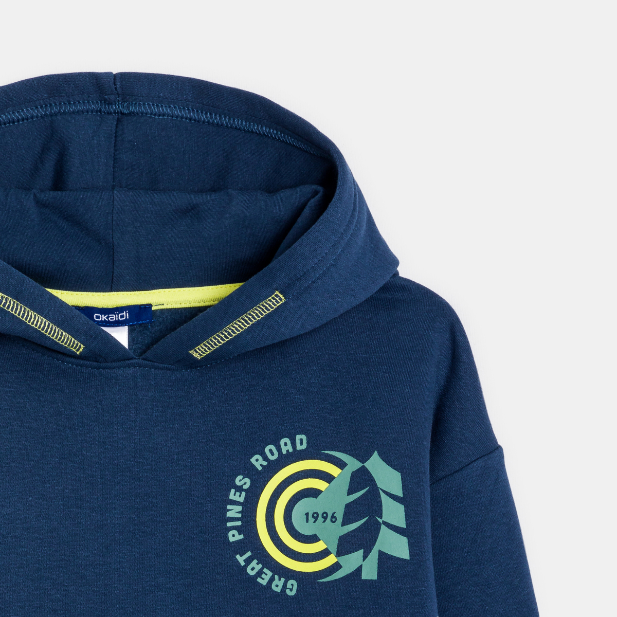 سويت شيرت بغطاء للرأس، باللون الأزرق للفتيان.