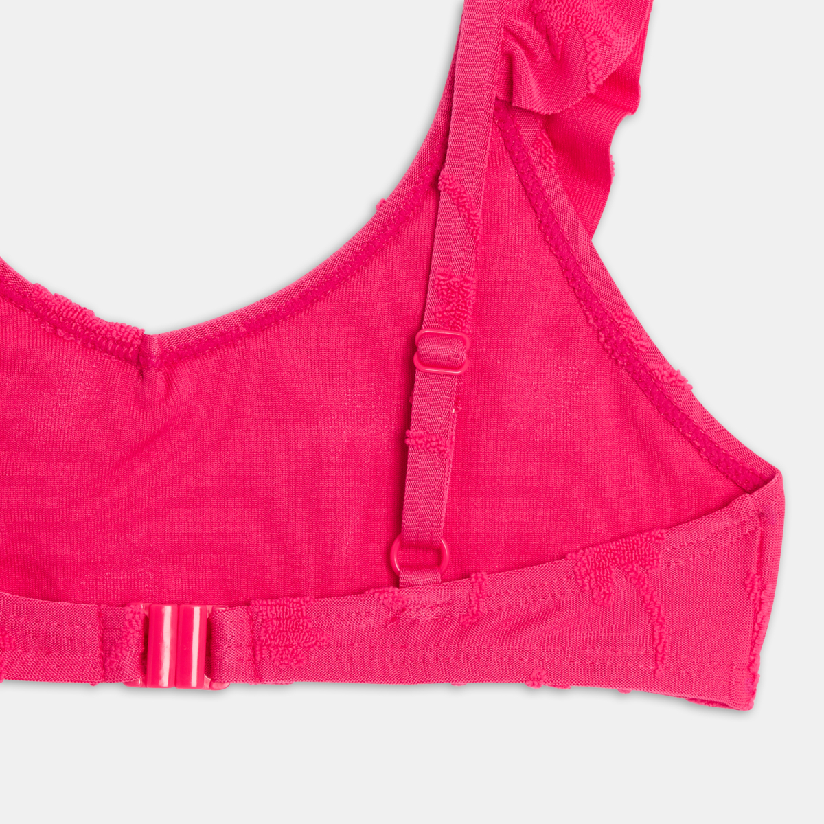الكشكشة والزخارف البارزة تعطي احساسًا على حافة الماء! شورت السباحة هذا المكوّن من قطعتين مزين بكشكشة. قماش قابل للتمدد ومبطن، مصمم للاستحمام، وسريع الجفاف. يُشطف بالماء النظيف بعد السباحة.