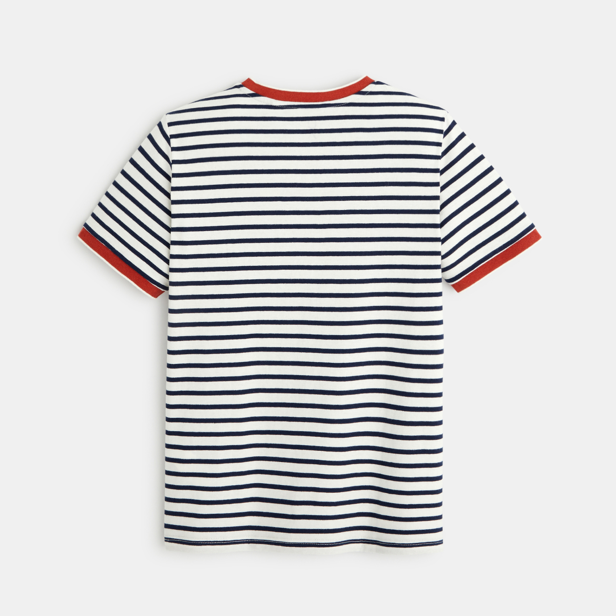 نسيم البحر وإطلالة مليئة بالانتعاش: يمكنك دائمًا الاعتماد على جاذبية التيشيرت المخطط. بقماش الجيرسي الناعم. قصًة مستقيمة. ياقة مستديرة وأساور بأكمام قصيرة مزينة بحافة مضلعة بلون مختلف. نقش زينة على الصدر. نهاية مستقيمة.