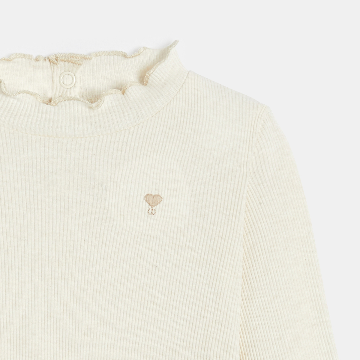 تيشيرت كوت مسطح وياقة متموّجة بلون البيج للفتيات الرضع.