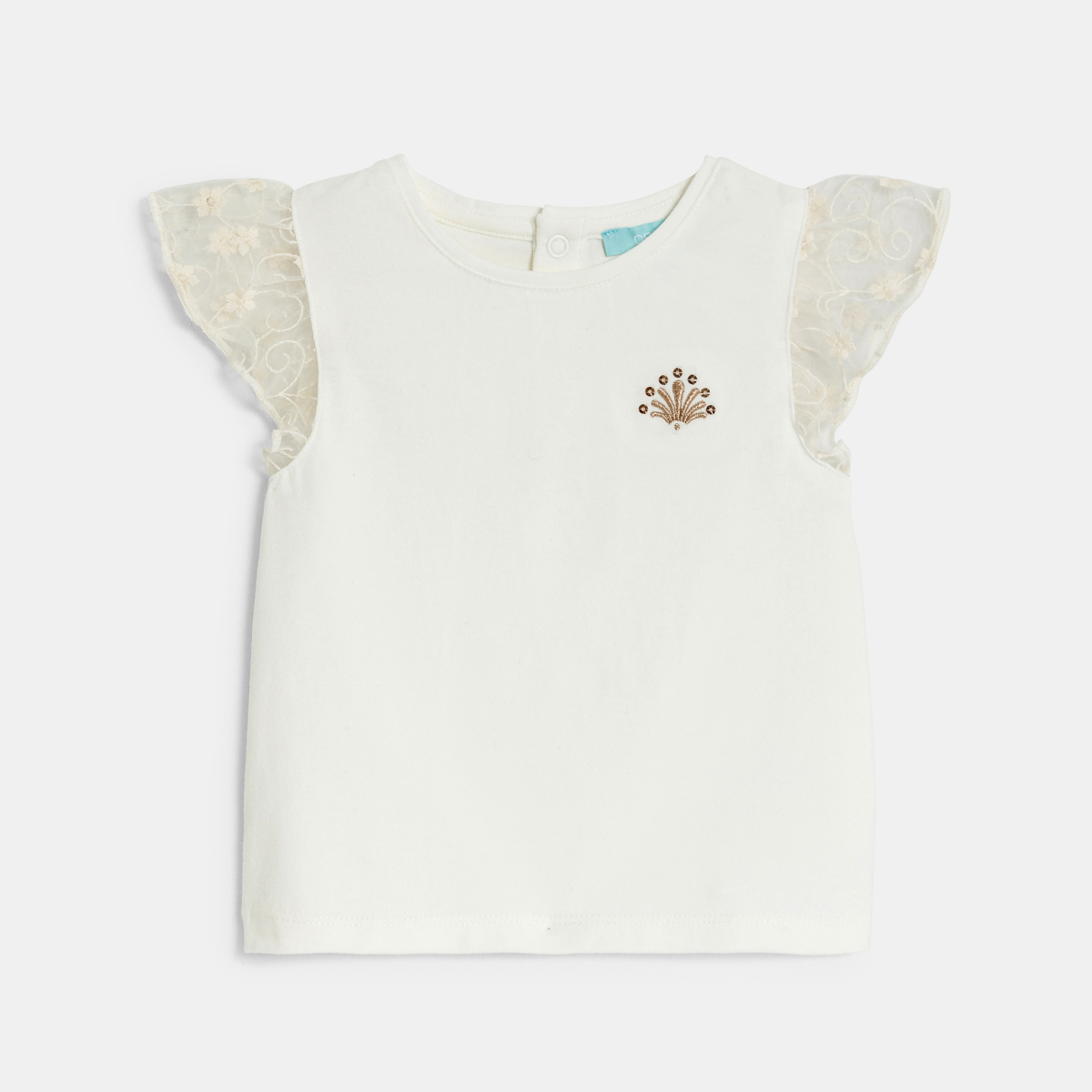تي شيرت أبيض بأكمام قصيرة مطرزة، للطفلة الرضيعة
