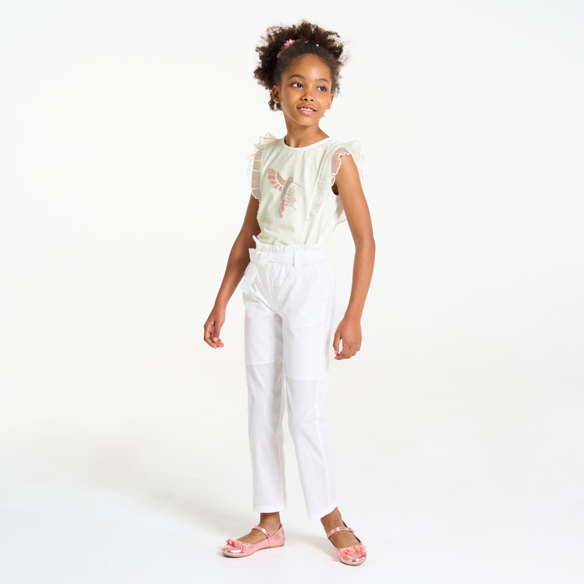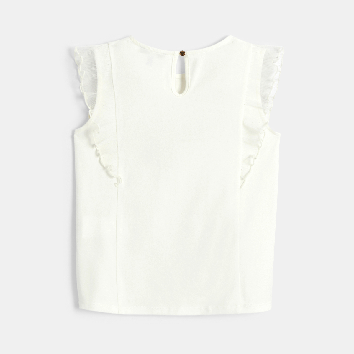 قميص تحتاني بكشكش ومزين برسوم للطائر الطنان، باللون الأبيض للفتيات