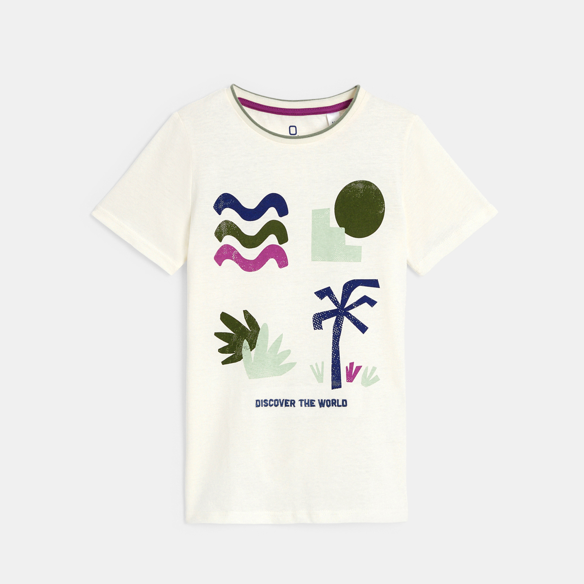 تي شيرت بأكمام قصيرة بنقوش أبيض للأولاد