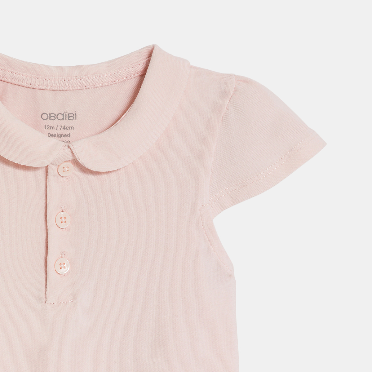 قميص بولو من القطن بياقة مستديرة، باللون الوردي للفتيات الصغيرات.