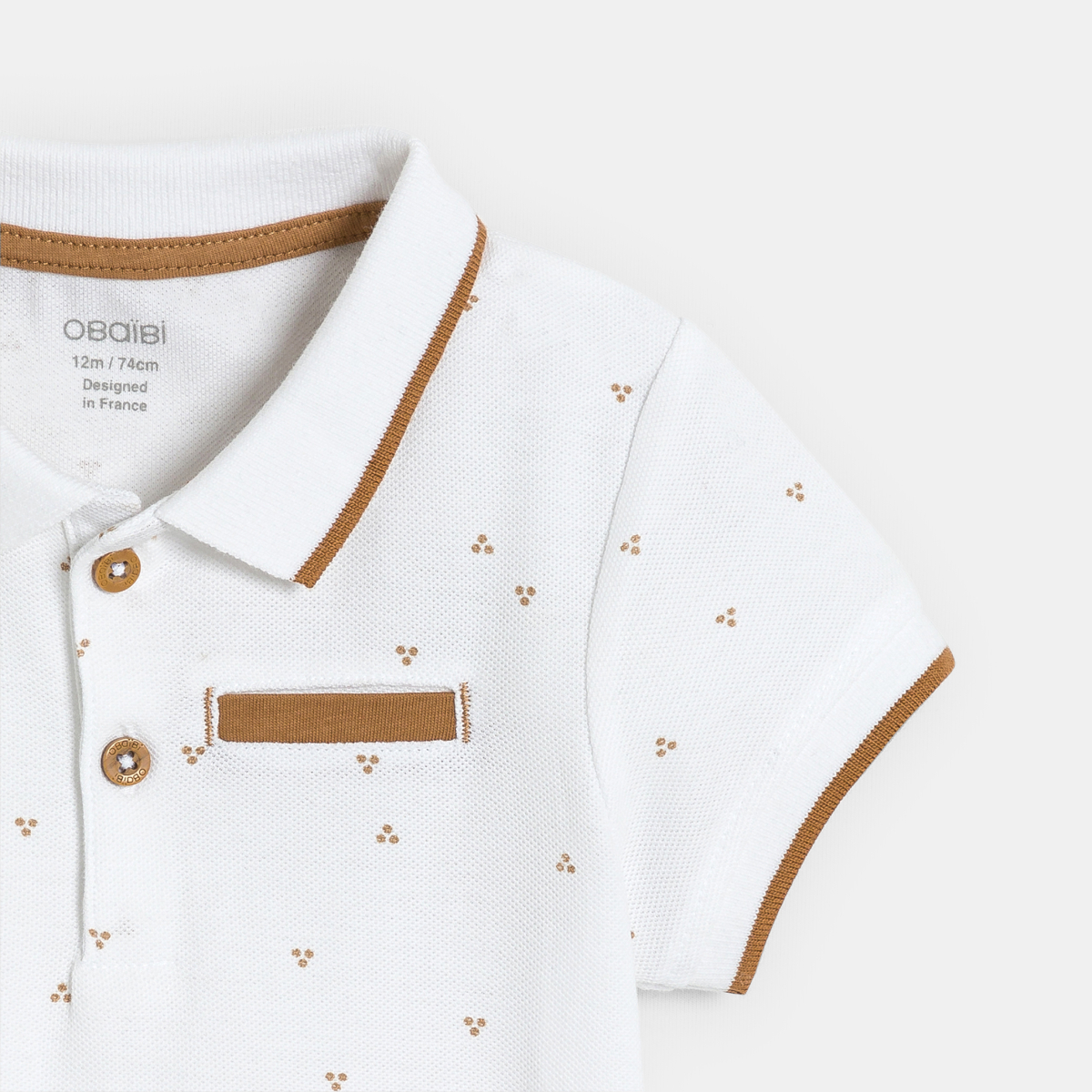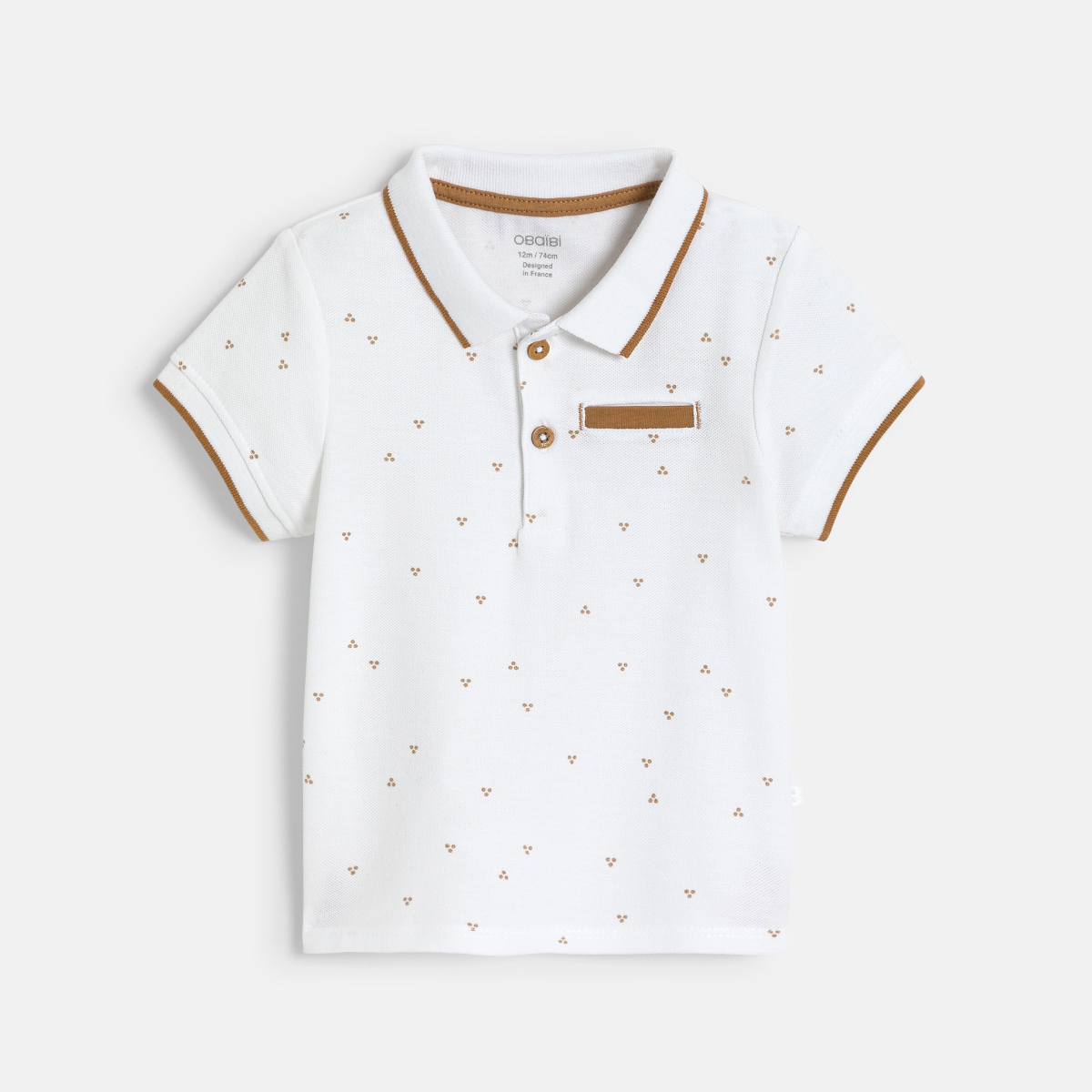 تيشيرت بولو من القطن، باللون الأبيض ومُزخرف، للفتيان الصغار