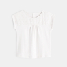 رقيقة ورومانسية هي التطريزات التي تزين هذا التيشيرت المصنوع من الجيرسي طيات على الصدر وأساور تزين الأكمام القصيرة، هذه هي التفاصيل التي تحبها الفتيات الصغيرات.