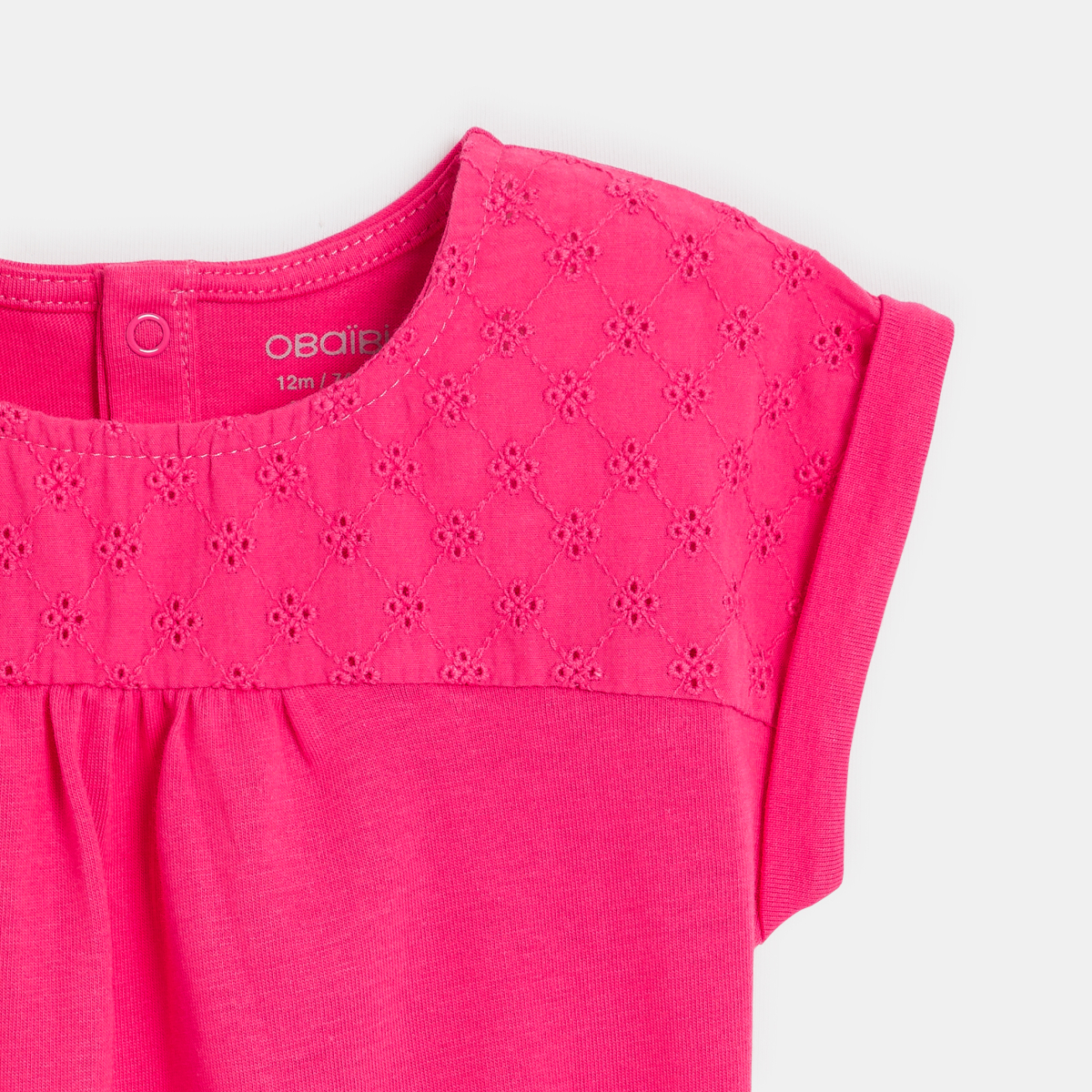 تيشيرت بخامة ثنائية وتطريز إنجليزي باللون الوردي للفتيات الصغيرات
