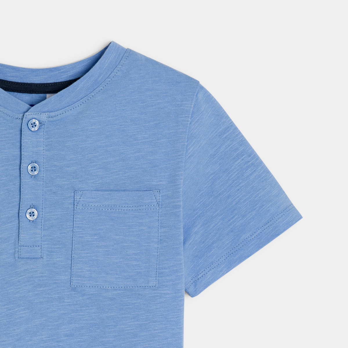 تيشيرت بكم قصير مع رقبة مستديرة تونسية بأزرار، متوفر بمجموعة جميلة من ألوان الموسم. قطعة ملابس لا غنى عنها في خزانة الأولاد الصيفية، مصنوعة من القطن ناعم الملمس خفيف الوزن.