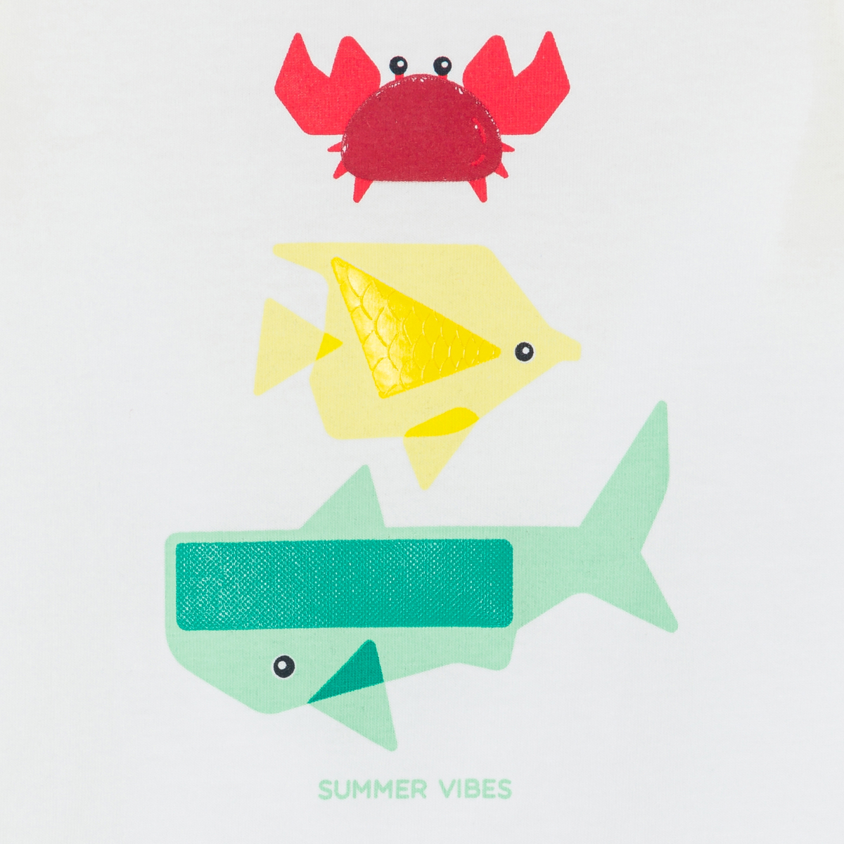 لإيقاظ حاسة اللمس لدى الأولاد، فإن هذا القميص الداخلي يسلط الضوء على الحيوانات. أجزاء بارزة أو ناعمة، مع سمك قرش والسمك وسرطان البحر كلها ملونة. تيشيرت بدون أكمام من القطن الناعم ضروري عندما يكون الجو حارًا. الإغلاق بأزرار كبس من الخلف.