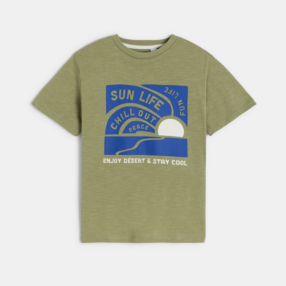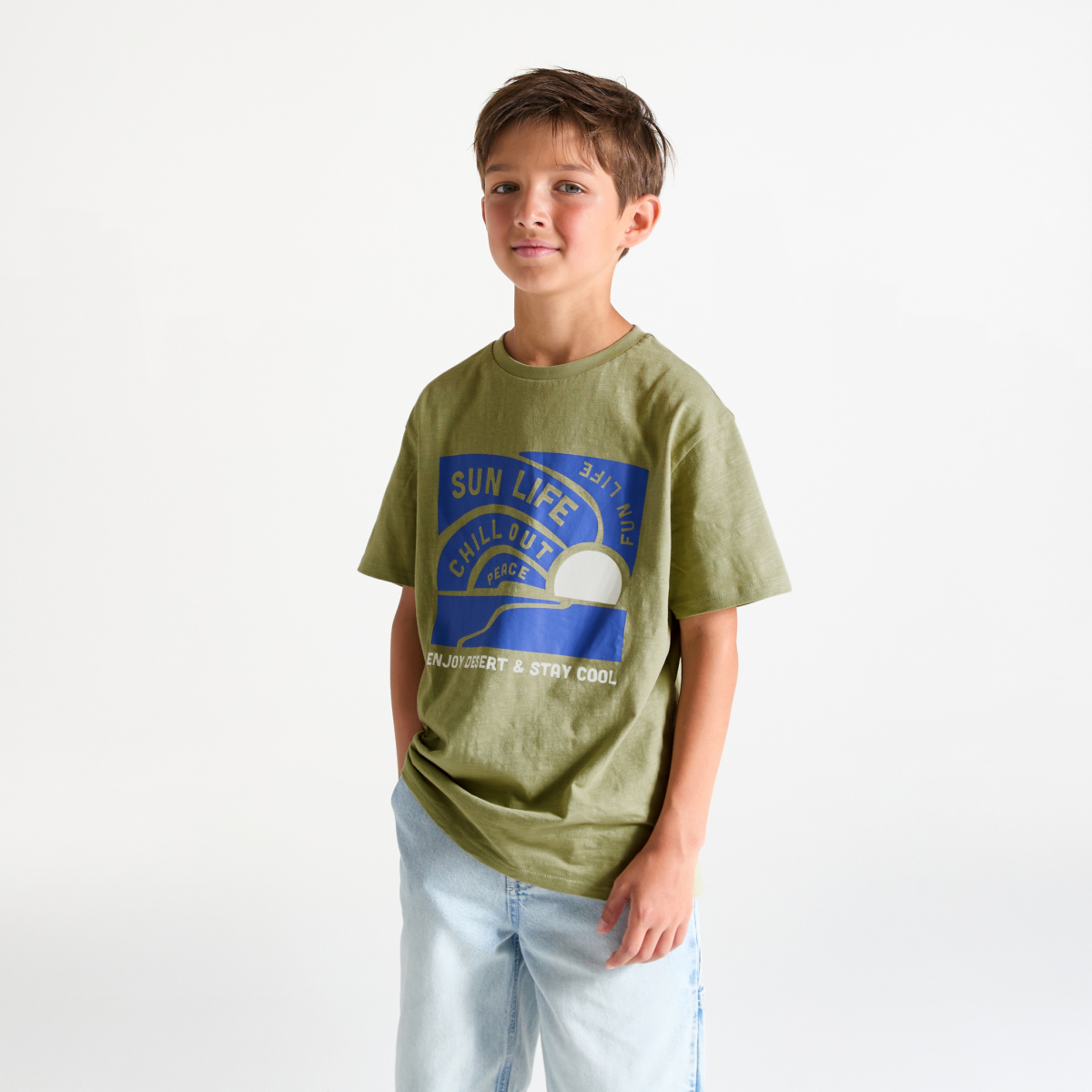 تي شيرت باللون الكاكي للفتيان، مُزيَّن بعبارة مطبوعة