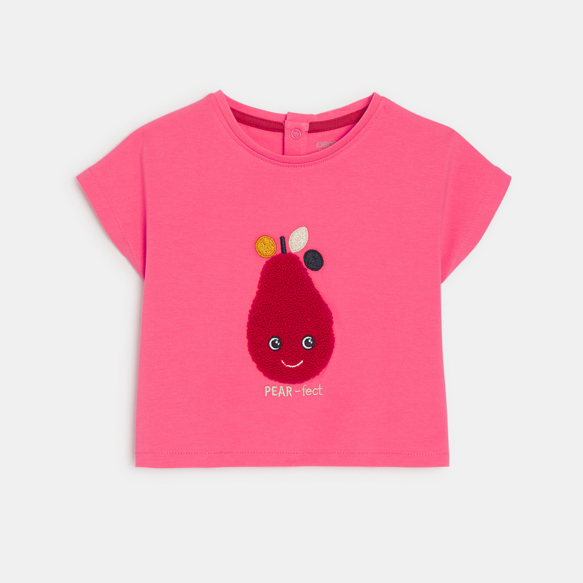 تيشيرت وردي عليه صورة الكمثرى بارزة بشكل محسوس، للطفلة الصغيرة