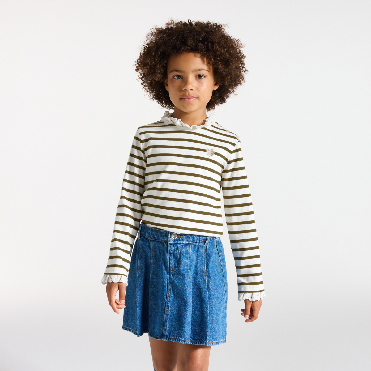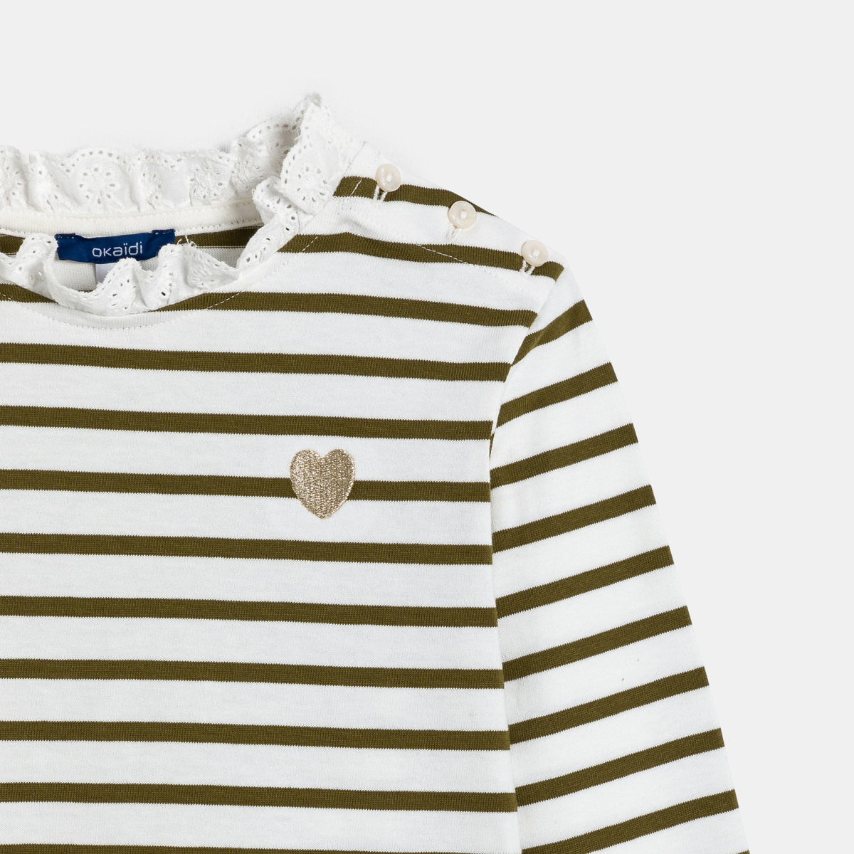 تيشيرت بحارة كاكي بياقة من الدانتيل، باللون الكاكي للفتيات