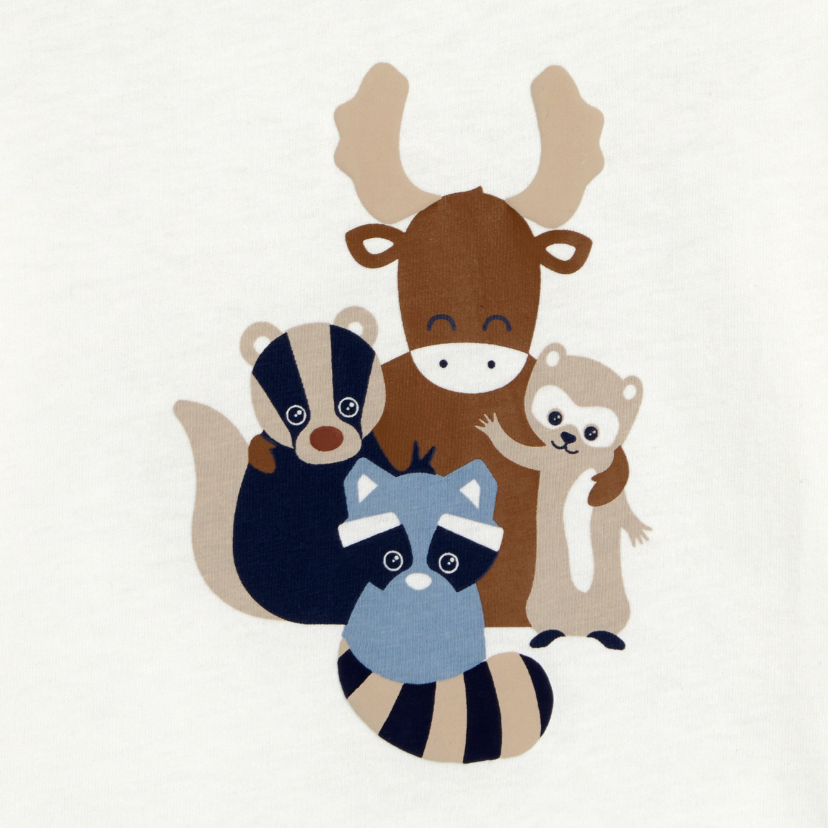 تيشيرت بأكمام طويلة برسوم حيوانات، باللون الأبيض للأطفال الصغار