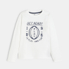 يتميز هذا التي شيرت بأكمام طويلة ناعمة ومريحة ورياضية في الوقت المناسب، فهو مناسب للأولاد. من قماش الجيرسي الناعم. قصّة مستقيمة. ياقة دائرية مضلعة لسهولة الارتداء. نقوش مطبوعة من الأمام والخلف سادة. أكمام طويلة. الحافة السفلية مستقيمة. خياطة من اللون ذاته.