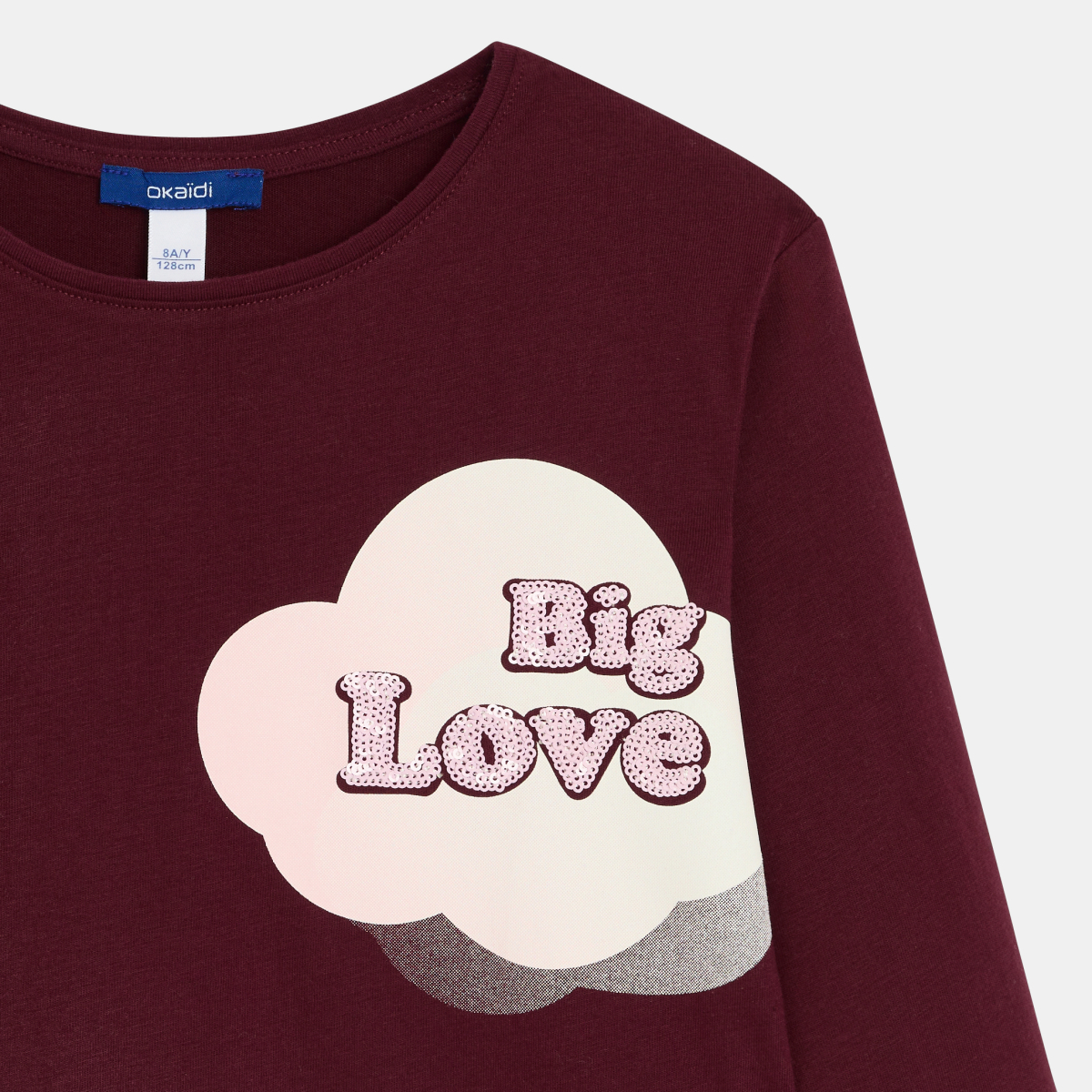 تيشيرت بأكمام طويلة مزين برسالة مطبوعة، باللون البنفسجي الفاتح للفتيات