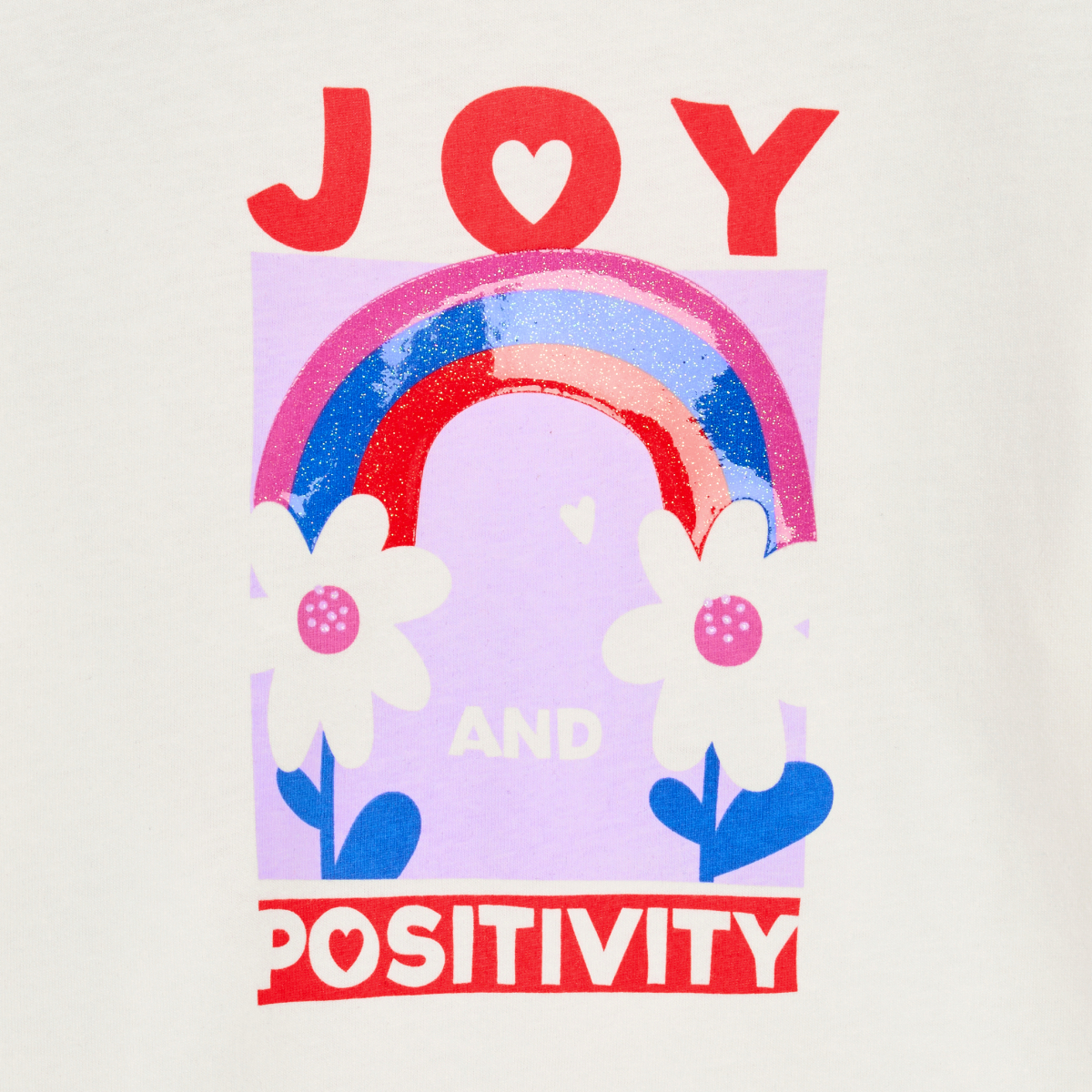 سوف تنفجر الفتيات بالطاقة الإيجابية والتألق في هذا التي شيرت الفاخر! القميص ناعم ومثالي لقضاء يوم ممتع في المدرسة أو حفلة عيد ميلاد. قصّة مستقيمة. ياقة مستديرة. أكمام طويلة. الحافة السفلية مستديرة قليلاً. خياطة من اللون ذاته.
