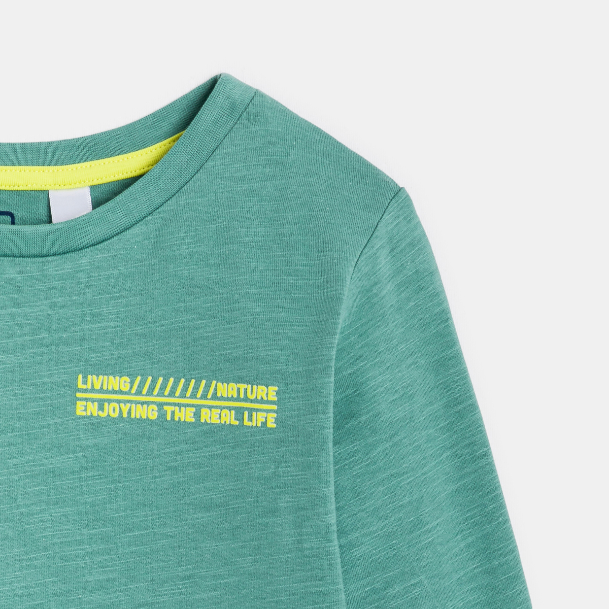 وصفي صُنع هذا التيشرت الأخضر من قماش الجيرسيه الناعم لتوفير الراحة المثلى للفتيان عند ارتداءه. مُصمم بقصَّة اعتيادية ولديه ياقة كلاسيكية مستديرة وأكمام طويلة مناسبة جدًا لأجواء منتصف الموسم. العبارة الموجودة في الأمام جهة الصدر وكذلك المناظر الطباعية المطبوعة جهة الظهر يضفيان طابعًا أنيقًا مواكب للموضة. سهل الارتداء ومثالي للمدرسة أو الترفيه.