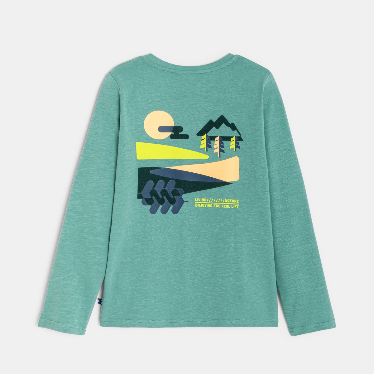 تيشيرت باللون الأخضر ومُزيَّن برسمة لمظاهر الطبيعة، للفتيان